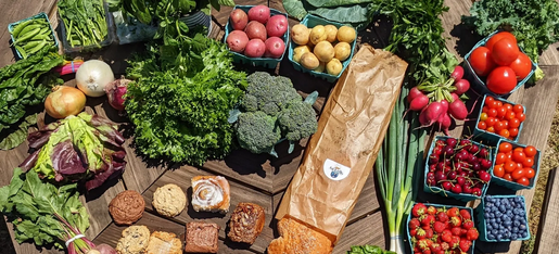 A self-serve roadside stand with fresh, in-season produce and local goods.